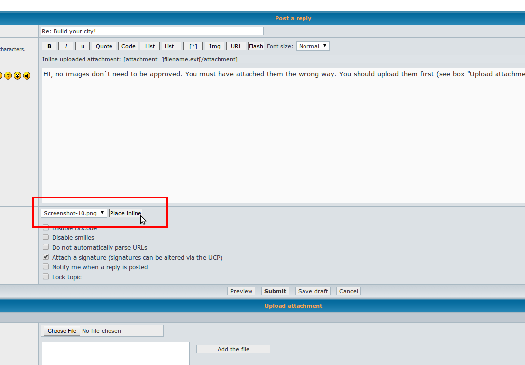 HI, no images don`t need to be approved. You must have attached them the wrong way. You should upload them first (see box "Upload attachment")